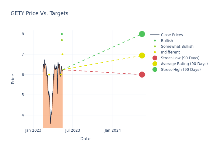 In the last 3 months, 8 analysts have offered 12-month price targets for Getty Images Holdings. The company has an average price target of $7.09 with a high of $9.00 and a low of $6.00.