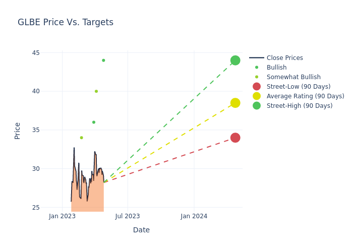 These 6 analysts have an average price target of $38.83 versus the current price of Global E Online at $28.245, implying upside.