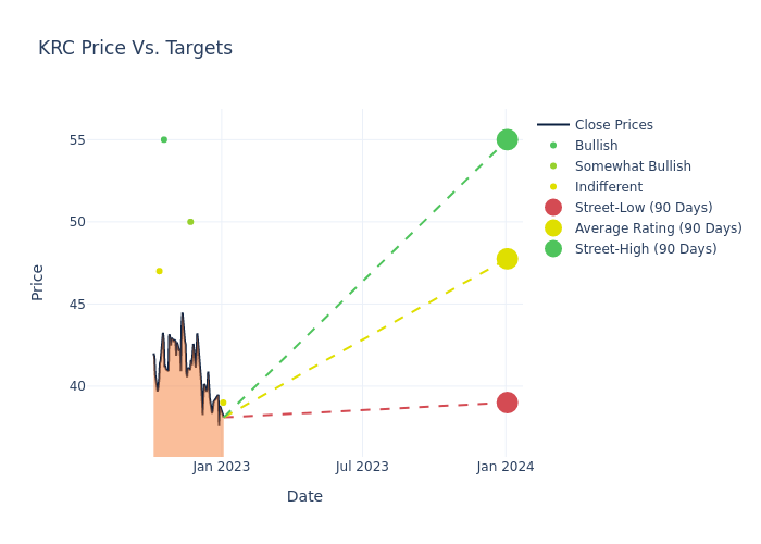 These 5 analysts have an average price target of $47.8 versus the current price of Kilroy Realty at $38.1, implying upside.