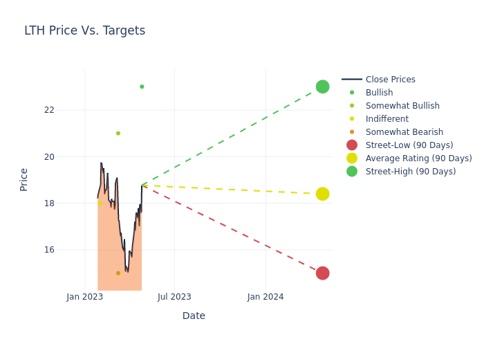 In the last 3 months, 6 analysts have offered 12-month price targets for Life Time Group Hldgs. The company has an average price target of $18.67 with a high of $23.00 and a low of $15.00.