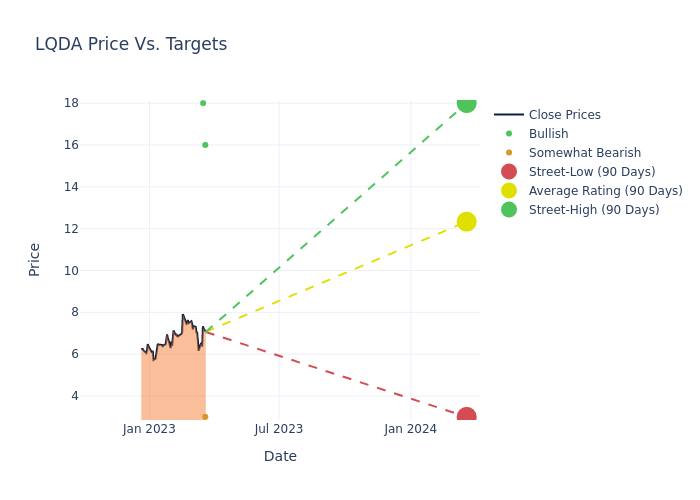 According to 4 analyst offering 12-month price targets in the last 3 months, Liquidia has an average price target of $13.25 with a high of $18.00 and a low of $3.00.
