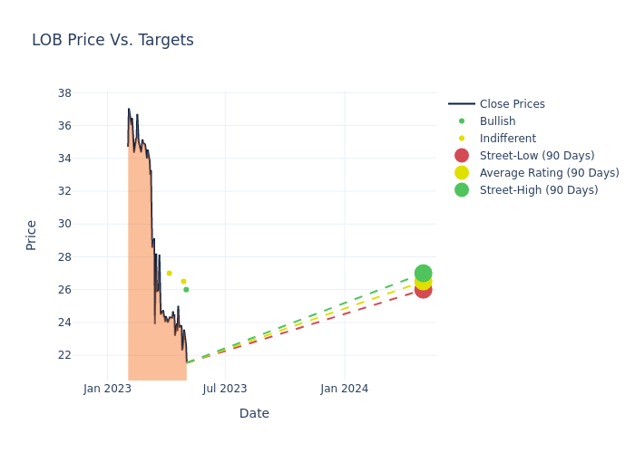 In the last 3 months, 4 analysts have offered 12-month price targets for Live Oak Bancshares. The company has an average price target of $27.12 with a high of $29.00 and a low of $26.00.
