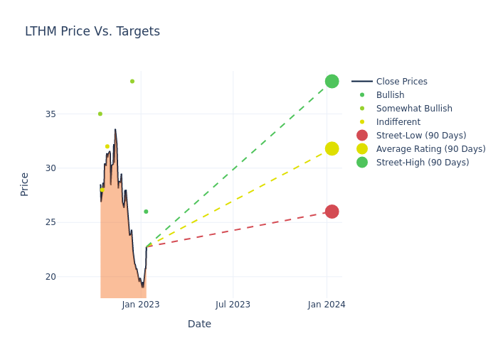 According to 4 analyst offering 12-month price targets in the last 3 months, Livent has an average price target of $31.0 with a high of $38.00 and a low of $26.00.