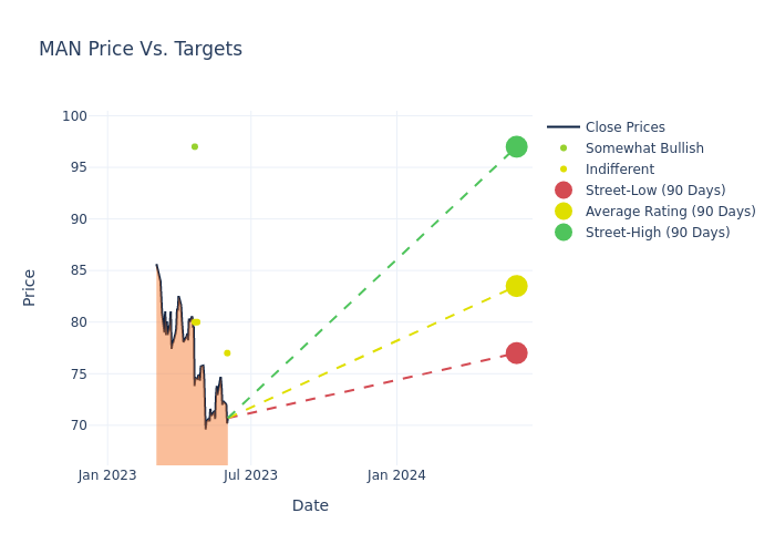 These 4 analysts have an average price target of $83.5 versus the current price of ManpowerGroup at $70.73, implying upside.