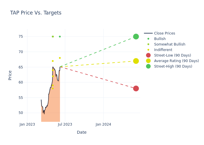 In the last 3 months, 12 analysts have offered 12-month price targets for Molson Coors Beverage. The company has an average price target of $65.25 with a high of $75.00 and a low of $52.00.