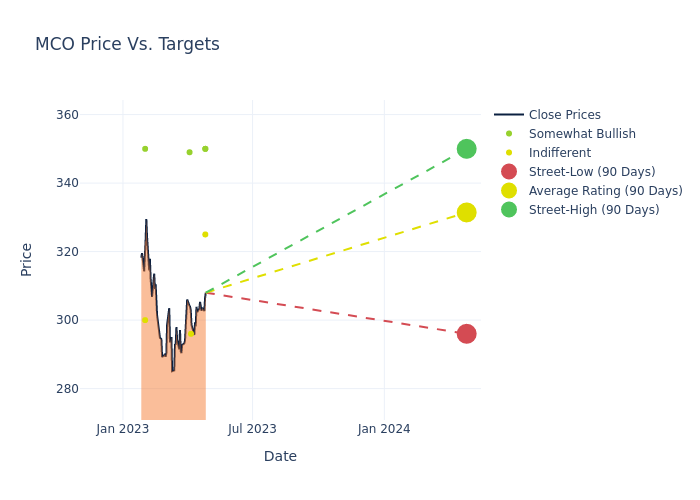 According to 8 analyst offering 12-month price targets in the last 3 months, Moody’s has an average price target of $332.75 with a high of $350.00 and a low of $296.00.