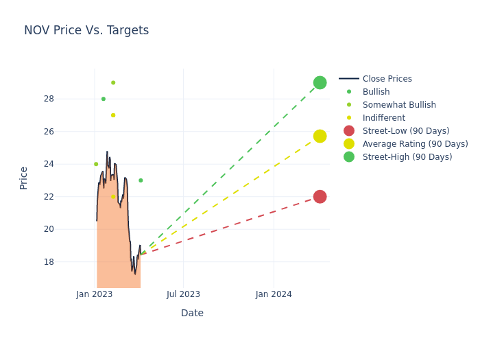 According to 6 analyst offering 12-month price targets in the last 3 months, NOV has an average price target of $26.0 with a high of $29.00 and a low of $22.00.