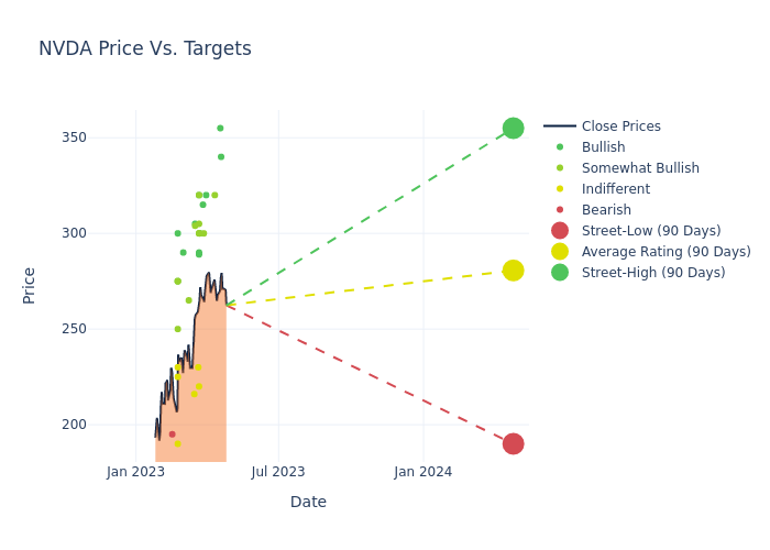 In the last 3 months, 49 analysts have offered 12-month price targets for NVIDIA. The company has an average price target of $271.9 with a high of $355.00 and a low of $190.00.