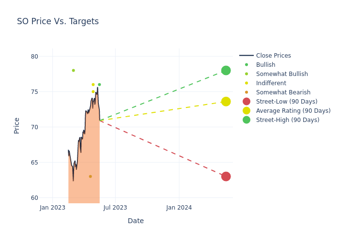Analysts have provided the following ratings for Southern (NYSE:SO) within the last quarter:
