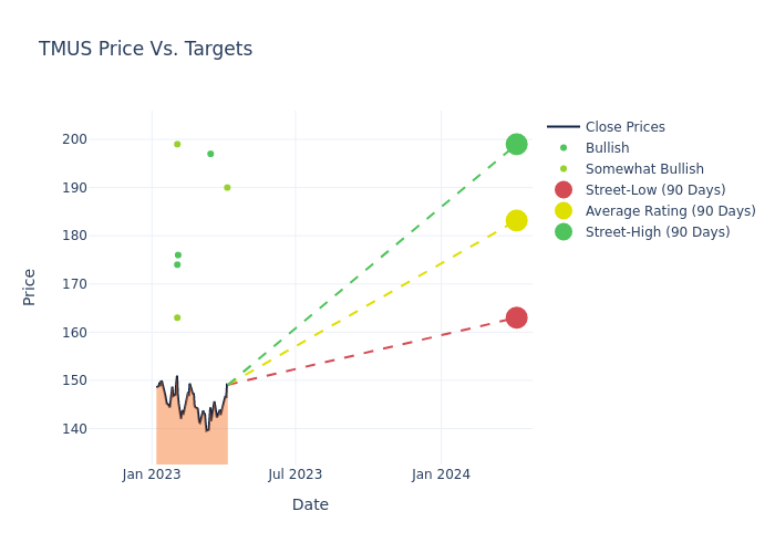 According to 6 analyst offering 12-month price targets in the last 3 months, T-Mobile US has an average price target of $183.17 with a high of $199.00 and a low of $163.00.