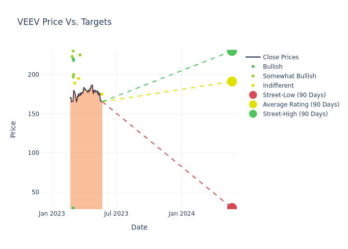 According to 13 analyst offering 12-month price targets in the last 3 months, Veeva Sys has an average price target of $192.85 with a high of $230.00 and a low of $30.00.