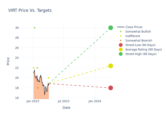 Within the last quarter, Virtu Finl (NASDAQ:VIRT) has observed the following analyst ratings: