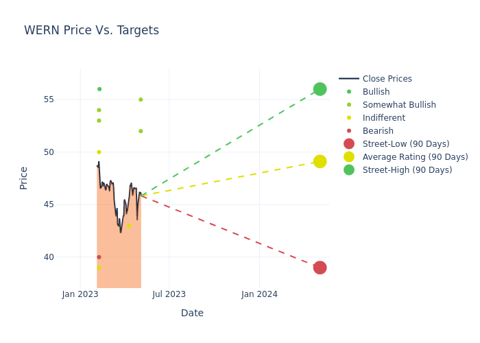 In the last 3 months, 11 analysts have offered 12-month price targets for Werner Enterprises. The company has an average price target of $49.27 with a high of $56.00 and a low of $39.00.