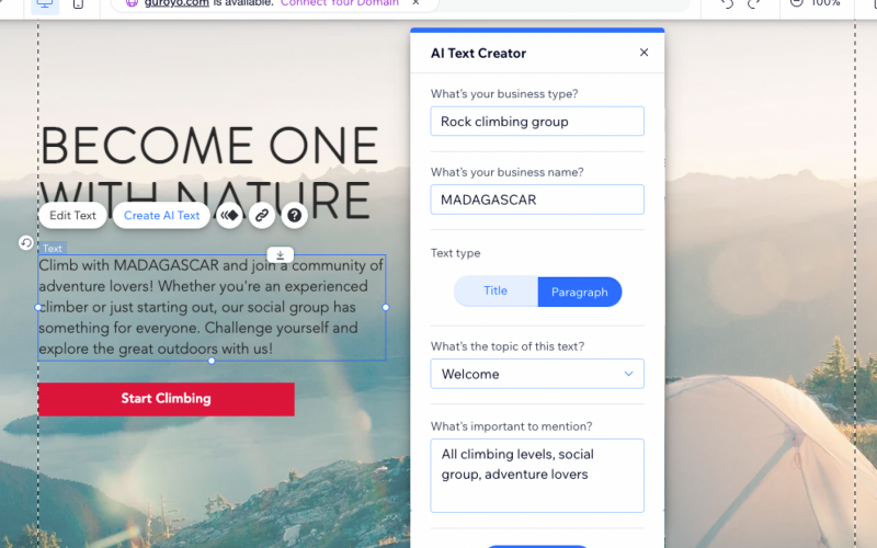 The AI Page and Section Creator will enable users to quickly add a new page or section to a website by describing their needs, and AI will generate the layout, design and text.
